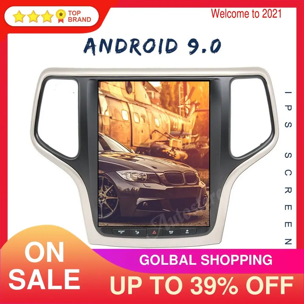 Deal 128 Tesla Style Android 9.0 Car Multimedia Player GPS Navigation For JEEP Grand Cherokee 2014-2019 Gold Stereo Head Unit Carplay